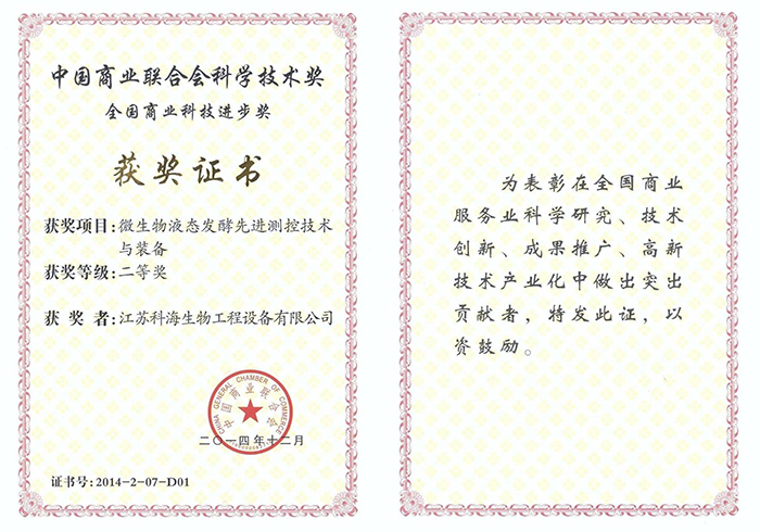 熱烈慶祝我公司的“微生物液態(tài)發(fā)酵先進(jìn)測控技術(shù)與裝備”項目榮獲全國商業(yè)科技進(jìn)步“二等獎”