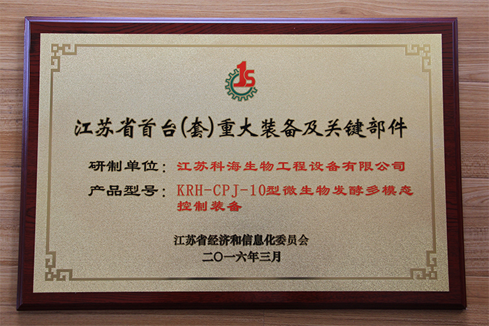 熱烈慶祝江蘇科海研制的“KRH-CPJ-10型微生物發(fā)酵多模態(tài)控制裝備”榮獲“江蘇省首臺套重大裝備及關(guān)鍵部件”榮譽(yù)稱號